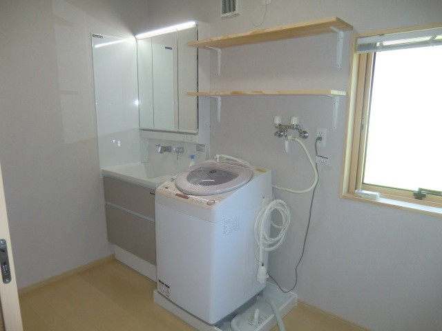 今まで狭かった洗面脱衣室を1.5坪にスペース広げ窓もついたのでかんきも、日あたりも非常に良くなった。