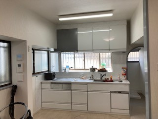 ライフスタイルが変わり、大きなL型キッチンが使いづらかったため、壁付けのI型へレイアウト変更しました。