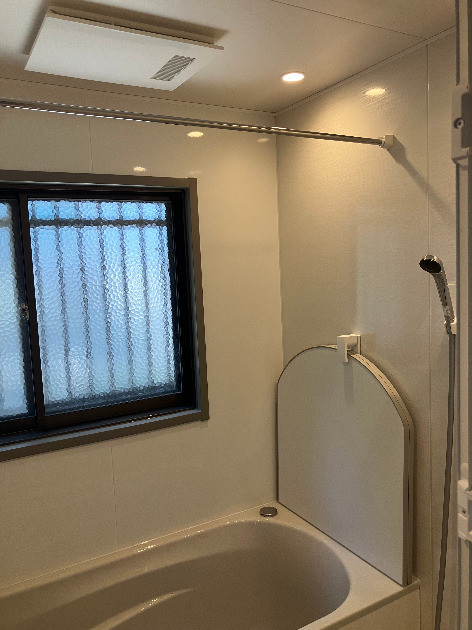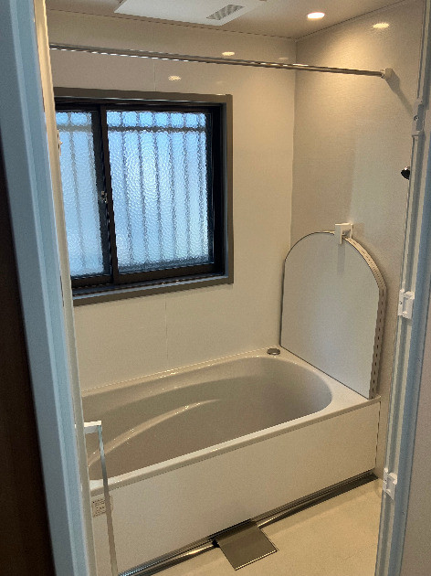 変形の浴室でしたが、システムバスへのリフォームにあたって浴槽奥の壁を壊し、一坪の浴室へ変更したことで、足を伸ばしてゆったり浴槽に浸かれるようになっています。