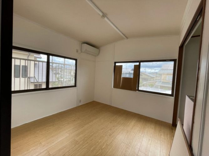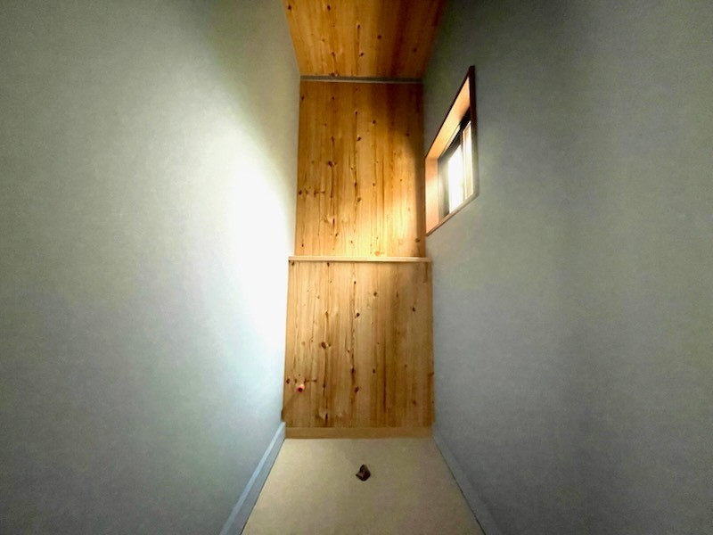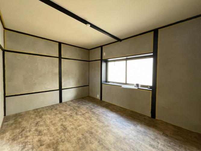 2Fの個室は既存壁紙の上から漆喰塗りをされました。床は後にDIYでフロアタイルを貼られます♪