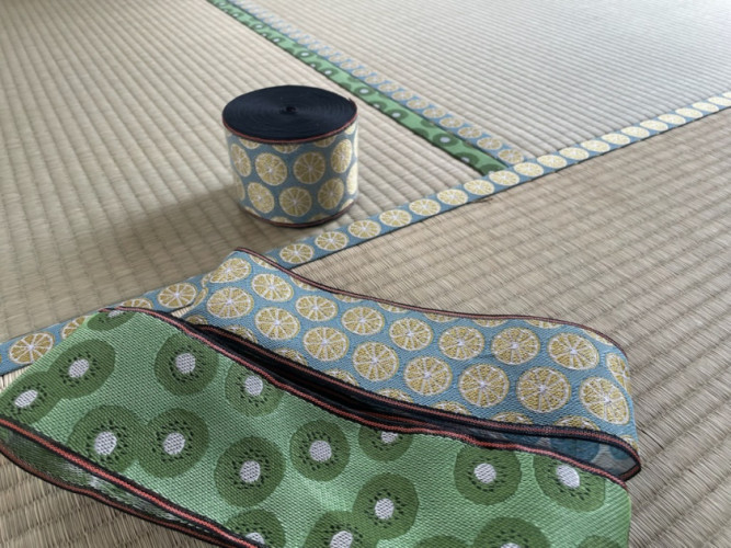 キウイフルーツとレモン柄の2種類、とても可愛らしい畳のヘリでした♪