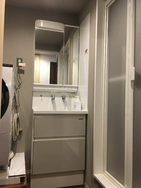ドラム式の洗濯機を置かれるとのことで、洗濯機のフタの開閉を考慮して、洗面化粧台の幅60㎝に致しました。