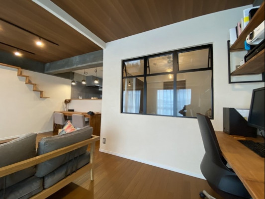 隣接する寝室への採光採風のため、室内窓を設置しました。