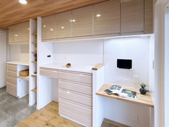 造作のデスクコーナーも組み込まれています。