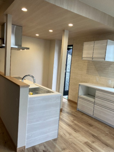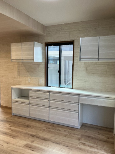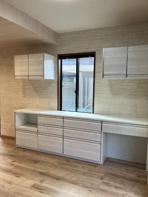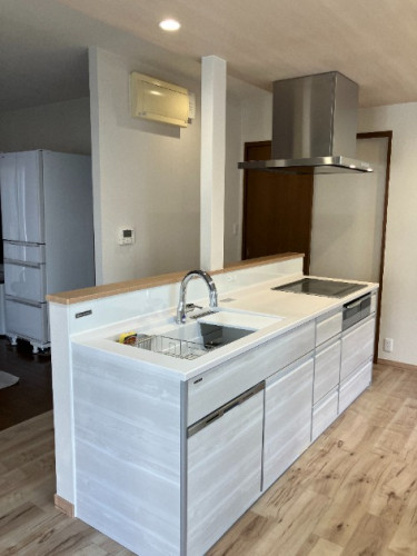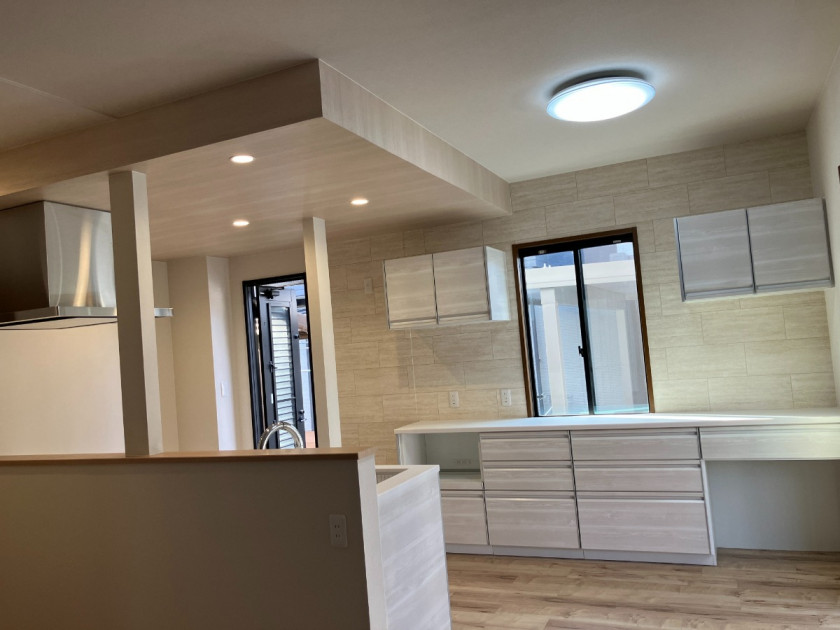 また、間仕切りや吊戸を無くして、よりすっきりと解放感のあるキッチンに仕上げることができました。
