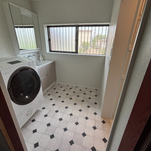 洗面台の収納が増えたので、もともとあった棚を撤去して、より広々とした脱衣所に