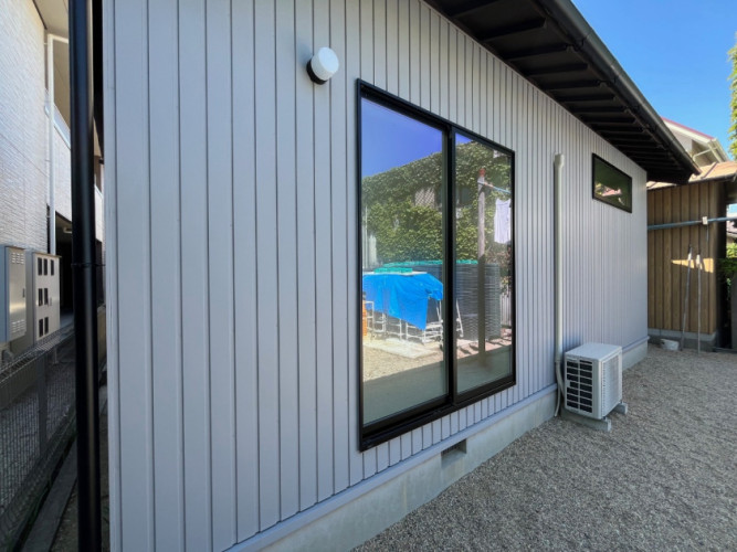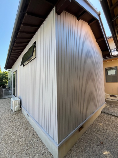 外壁の色をインテリアのテイストとトータルコーディネートしたガルバリウム鋼板に貼替しメンテナンス性もアップ。