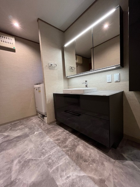 調光や調色出来るミラーの間接照明から溢れる光が織りなす上質な空間