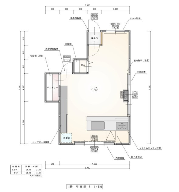 また使いづらかった物入をパントリーに変更する事でより使いやすく、部屋の中をすっきりと。