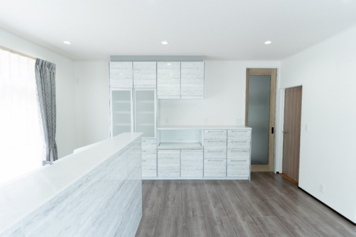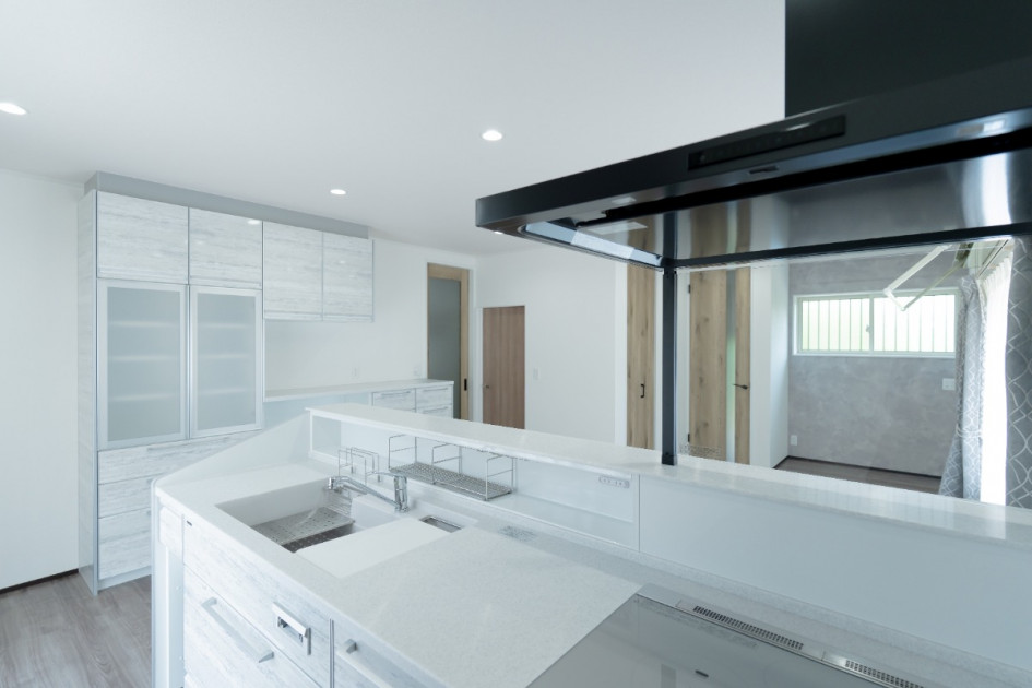 扉の仕様を変更する事でキッチン横へカップボードを設置する事が可能に!