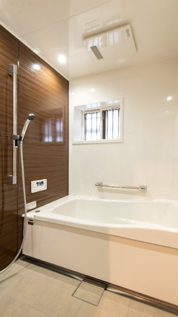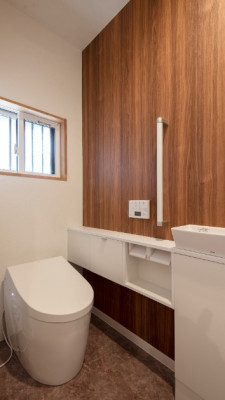 手すりと滑りにくい磁気タイルの床で安全な空間になりました。