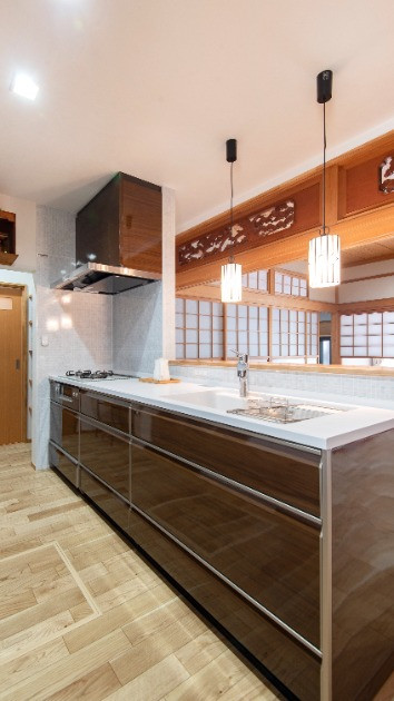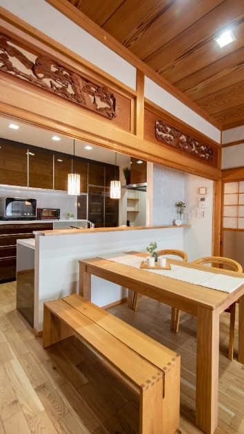 歴史を重ねた和の趣きが、シンプルモダンなダイニングに調和しています。