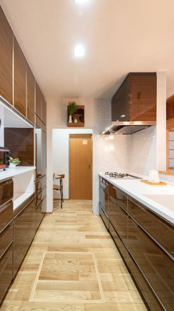白い壁にブラウンが映える素敵なキッチンに生まれ変わりました。
