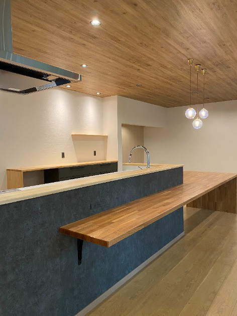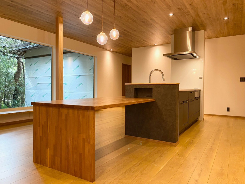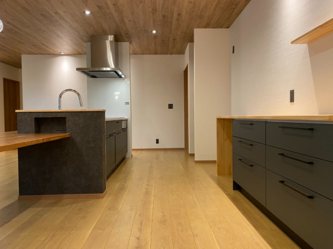キッチンはお部屋のど真ん中に配置して、文字通り家族の中心になりました。