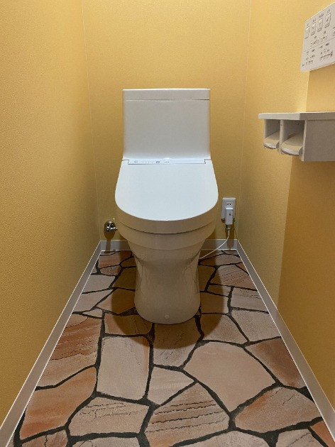 テラコッタ風のクッションフロアにして遊び心も取り入れました。