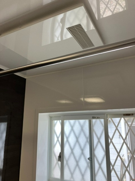 こだわりのハイクラスパネルがアクセントとなり、スマートな空間を作り上げています。ミラー・カウンターがない分、パネルが引き立っていますね。そして今回は、高断熱浴槽、節湯水栓はもとより、浴室暖房乾燥機を設けたり、浴室・及び居室の窓を断熱性の高いものに交換したりと、住宅のエコについてもきちんと考えています。また、お客さまのとにかく広く使いたい、丁寧にお手入れをしたいという意向によりオプションはほとんどつけていませんが、ホーローパネルであるため、ラック等市販のものでも随時買い足しができるので安心です。