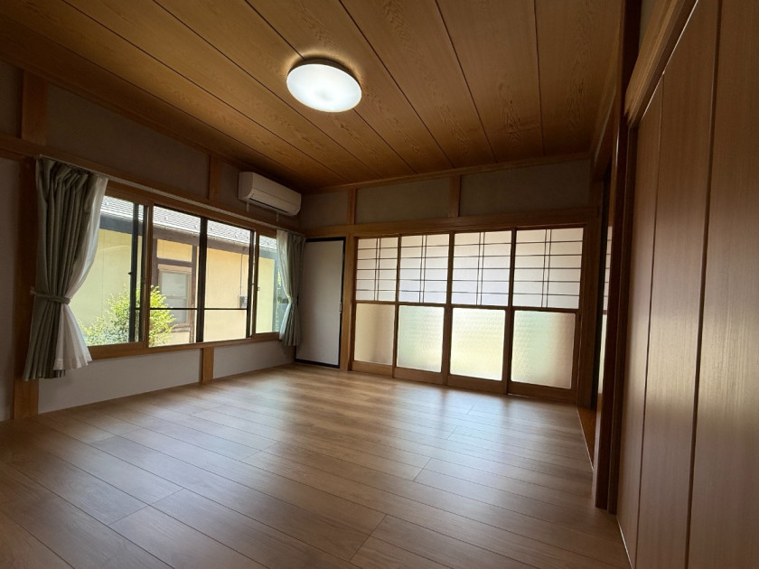 畳を撤去して下地調整後フローリングを。押入れは中段を撤去してハンガーパイプを設置。