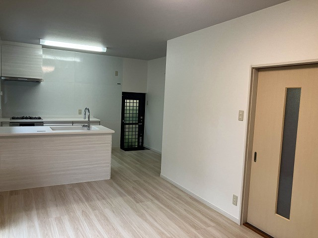 台所と居間の間仕切り壁を撤去し、広々としたリビングダイニングになりました。