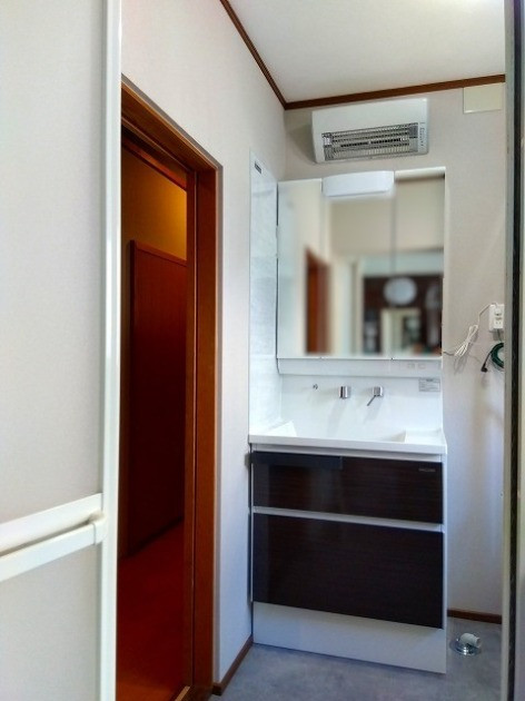 洗面化粧台は「ファミーユ(タカラ)」、下部収納部分は2段スライドタイプを選択。