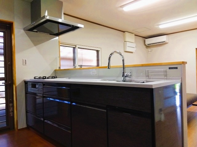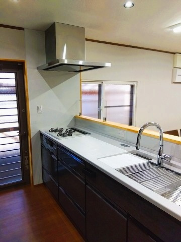 勝手口もキッチンの奥から出入りできるように移設しました。