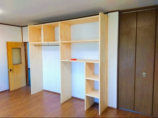 こちらの棚は「大工さんにつくってほしい」とのご希望にそって壁と一体化したものを造作しました。