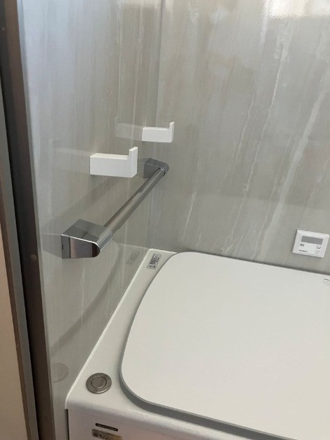 「手すり」も設置しました。浴室と脱衣所間にあった「段差の解消」とともに補助金の対象です。