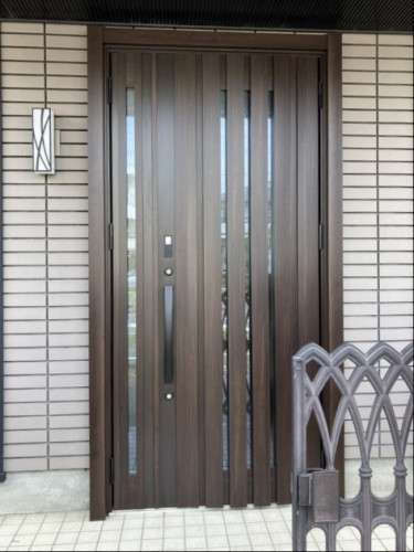 こちらも補助金対象の「玄関ドア(LIXIL/リシェント玄関ドア3)交換」です。断熱性能は寒冷地向け(K2)の仕様です。