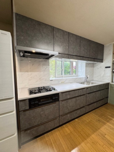 対面型が最初は希望でしたが間取り上難しく、今までと同じ壁に設置となりましたが、アイラックやレミューの引き出しで収納力がとても増えて大満足のリフォームでした!!