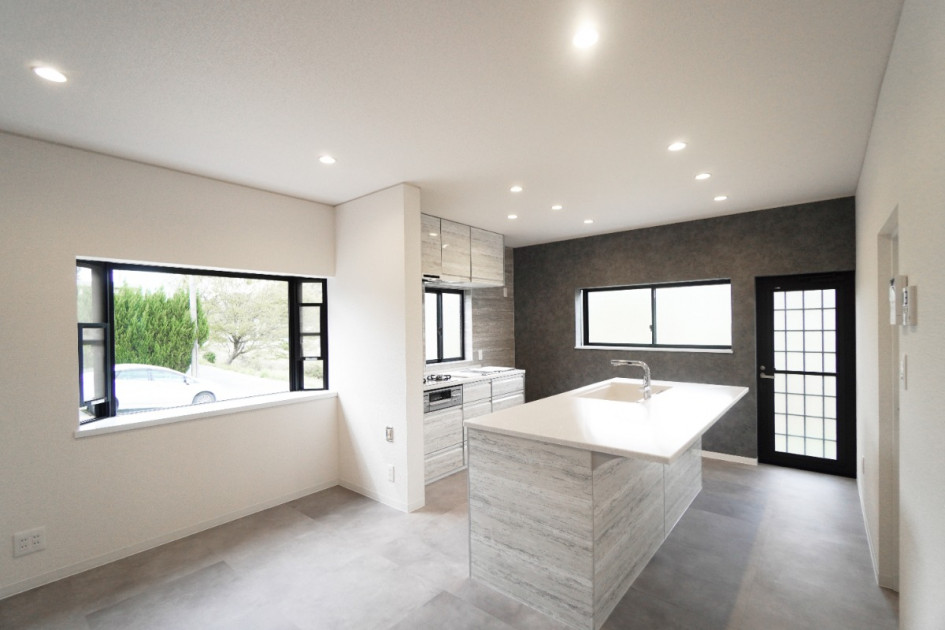 白とグレーを基調に、直線的なラインが映えるミニマルデザインへ。中心には存在感あるアイランドキッチンを配置し、空間全体の調和と機能美を高めました。動線や照明計画にもこだわり、暮らしの“ストレス”を軽減。家族が自然と集まる、心地よいLDKが生まれました。