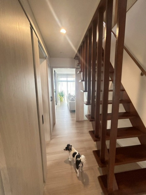 フロアを車椅子・わんちゃん対応のもの変更し、バリアフリー化で段差も解消しました。廊下と洋室のフロアを揃えることで空間が一体化し、より広がりのある素敵な空間になりました。
