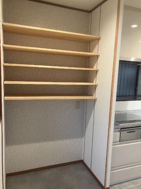 生まれたスペースを活用してパントリーを新設し、収納力も大幅にアップしました。