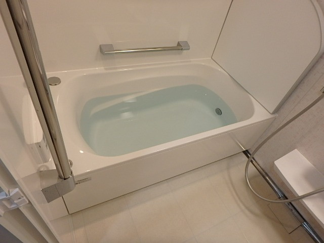 新しいバスタブに映る水面は
