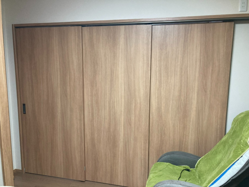 扉3枚分が開放になるので、2部屋の一体感が生まれ、2部屋を広々と使うことが出来そうな空間が作れました。