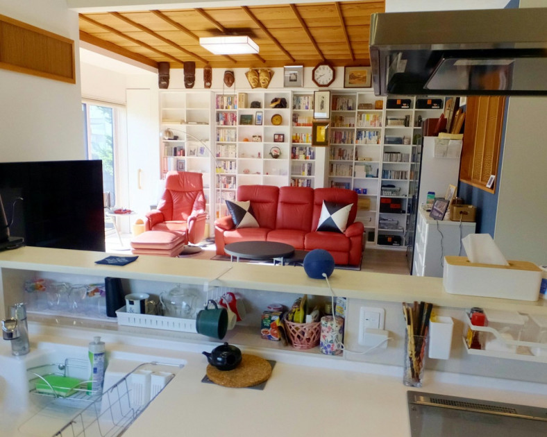 今までのお住まいは料理を運ぶのも片付けをするにも何歩も歩いて移動することが小さなストレスだったそうですが対面キッチンへリノベーション後は振り向くとお皿や炊飯器があり、手をのばすと食卓へ料理を運べるようになり家事同線が短くなりました。