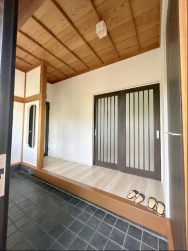 玄関の天井や壁は既存を残しながらリノベーションしました