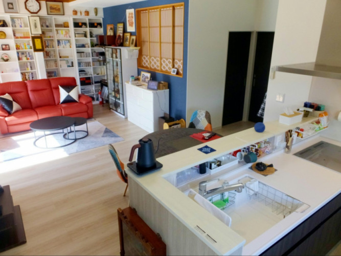 和風の外観を残しながら内部は既存の格天井や書院、欄間を残して和と洋が調和した空間は新しいのに懐かしく、居心地のよい住まいになり大変満足しています。キッチンも対面タイプとしたおかげで毎日の料理が楽しく片付けも、とてもラクになりました。IHは温度調整やお手入れが簡単で思う存分、料理の腕をふるっています。浴室は希望のジェットバス機能付きの肩包み湯としました。お風呂にはいると一日の疲れが取れ癒されます。お掃除に時間が掛からなくなり夫婦でゆっくりと過ごす時間ができました。