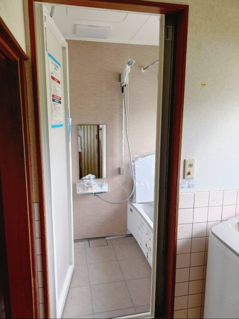 斜面に建ってるご自宅で、浴室の下には土間収納があり、中二階に浴室があるお宅でした。