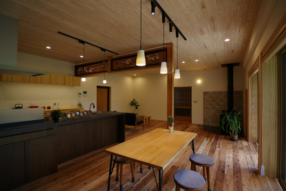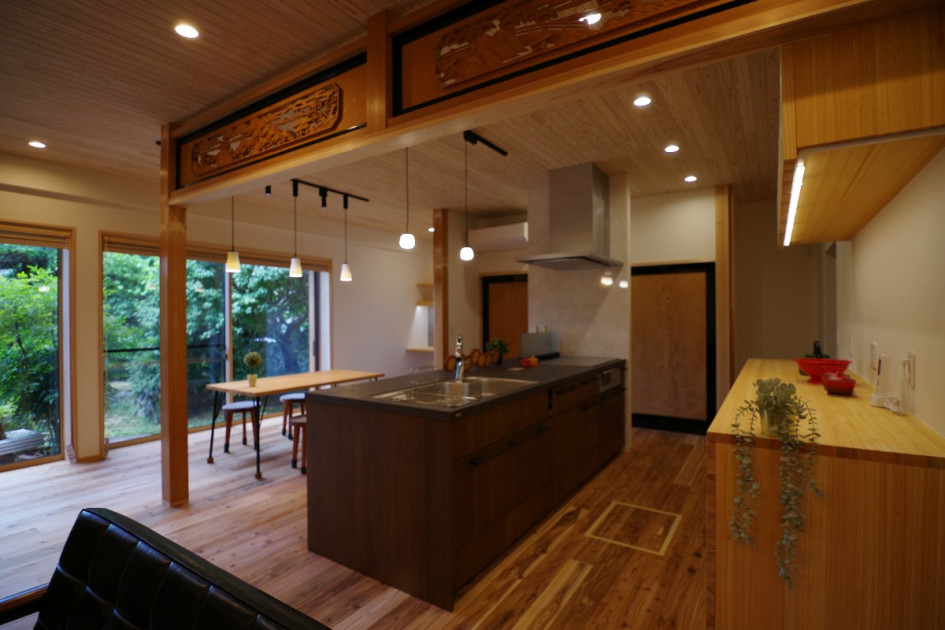 工事前の家で使われていた欄間や木製建具も再利用しもともとあった趣も少し残して