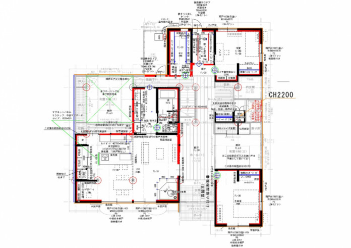 すべてを改修するとい予算オーバーとなるため部屋はゾーニングしそれぞれ断熱改修している。(赤線部分で断熱)