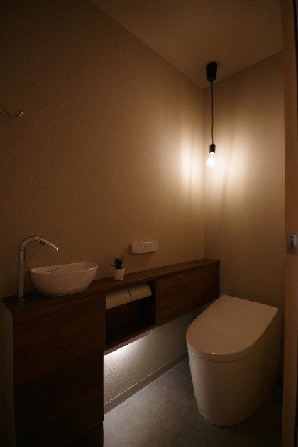 洗面脱衣室に配置し来客時も気を使うことなく過ごせるようにしました。