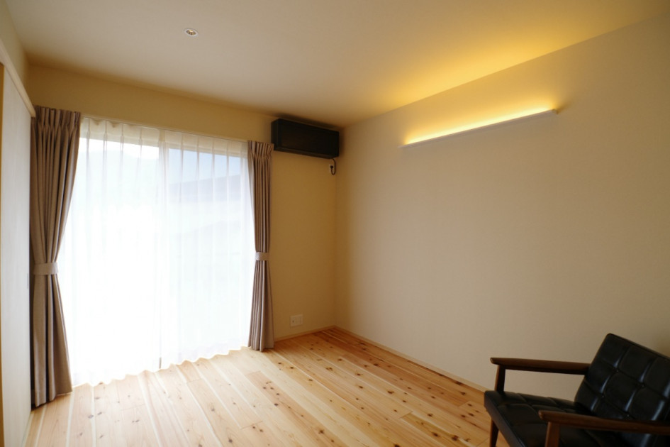 日当たりや風通しの良い南東部分をLDK化。その他和室も主寝室等に間取り変更するなど住まう方が快適に過ごせる空間作りを目指した。玄関位置も駐車場に近いところに移動しストレスのない動線を確保している。室内物干し場や趣味室など天候や季節に左右されず、家にいる時間をゆっくりと快適に過ごせる家となった。