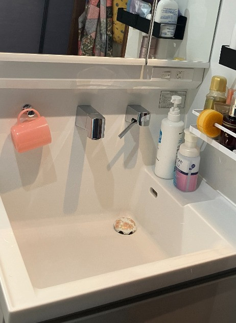 ミラー裏収納の設置により物が片付きすっきりとしました。洗面カウンターはドライエリア、ウェットエリアと分かれており、置くものによって使い分け可能です。