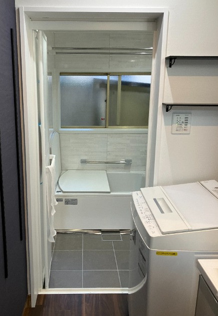 以前の浴室で気になっていた箇所は、浴室と洗面室との間にある段差部分と掃除の大変な床壁のタイルです。また洗面台は収納が少なく、物が溢れている状態でした。今回のリフォームでは、段差解消によるバリアフリーと洗面台の収納力を重視しました。以前から気になっていた点が改善され、とても快適になりました。