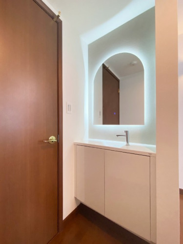 【世田谷区】グランスパ シンプルな水廻りにアクセントクロスを合わせて遊び心のあるリノベーション