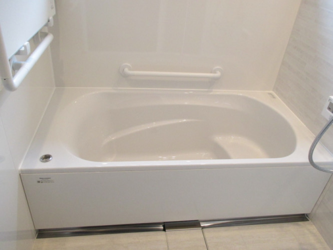 ゆったり足を延ばして入浴もでき、半身浴もできます。素敵なバスタイムを楽しんでください。給湯器も今回エコキュートに入れ替えましたので、お湯張りもボタン一つで楽ちんです。