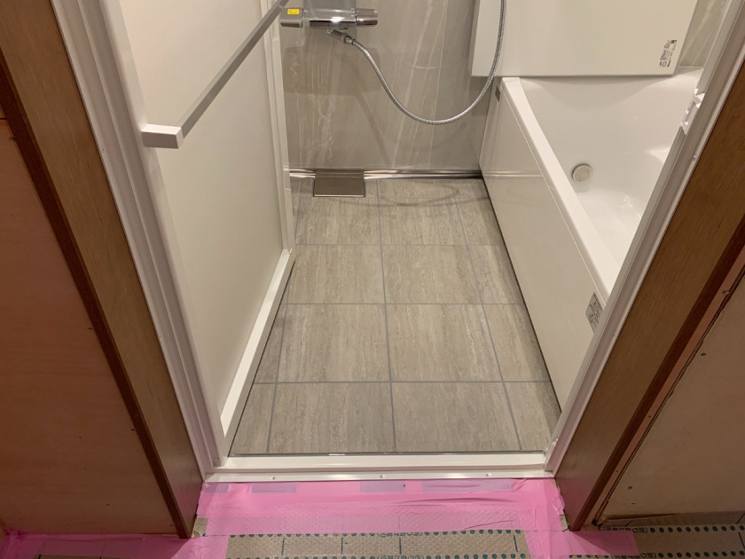 浴室と洗面室の出入口の敷居段差はなくなりました。バリアフリーで出入りしやすいです。