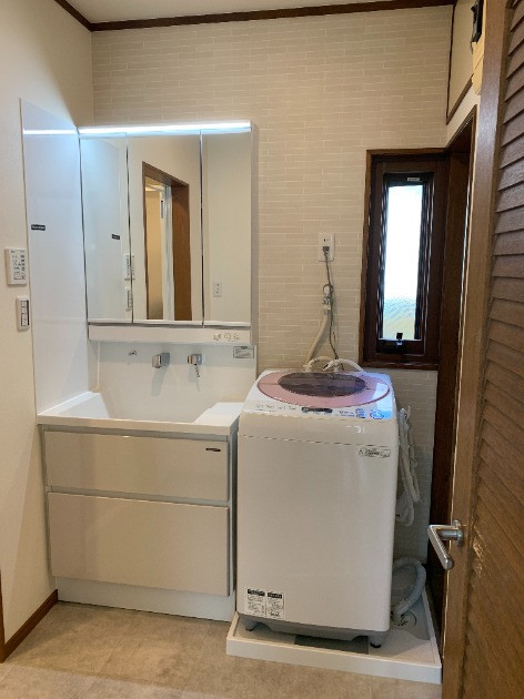 洗面台の隣に洗濯機を移設しました。