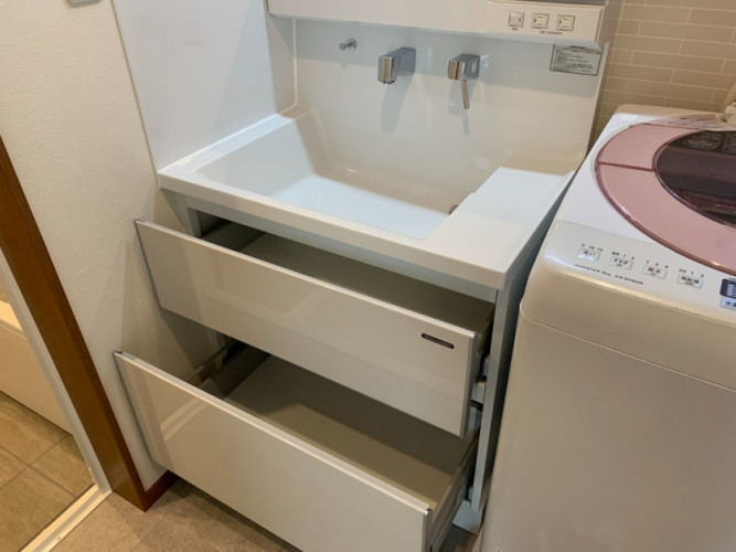下台の収納は引き出しタイプとなり、収納物の出し入れがしやすくなりました。