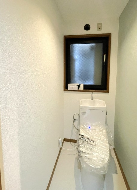 クッションフロア、クロス貼り替えでキレイなトイレ空間になりました。