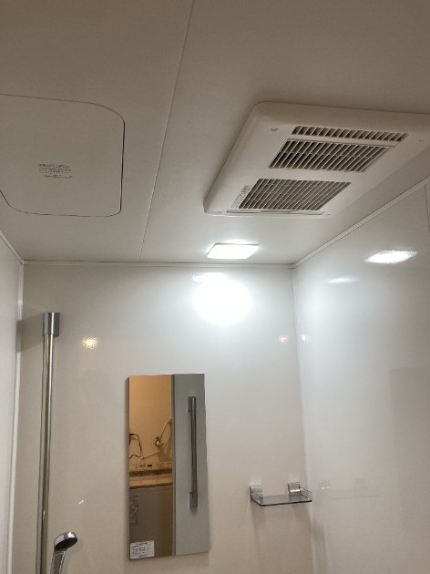 電気式200vの浴室暖房乾燥機で、脱衣室も暖房でき、冬でも快適にシャワーが使用できます。
